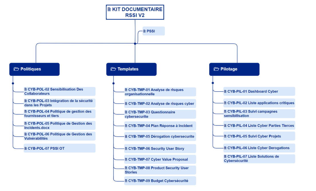Nous partageons avec notre communauté un ensemble de templates prêts à l’emploi pour structurer et piloter efficacement la cybersécurité de votre organisation : PSSI, gestion des dérogations, questionnaires fournisseurs, inventaire des applications critiques, analyses de risques flash, dashboards, PCA/PCI, et plans d’action incidents.