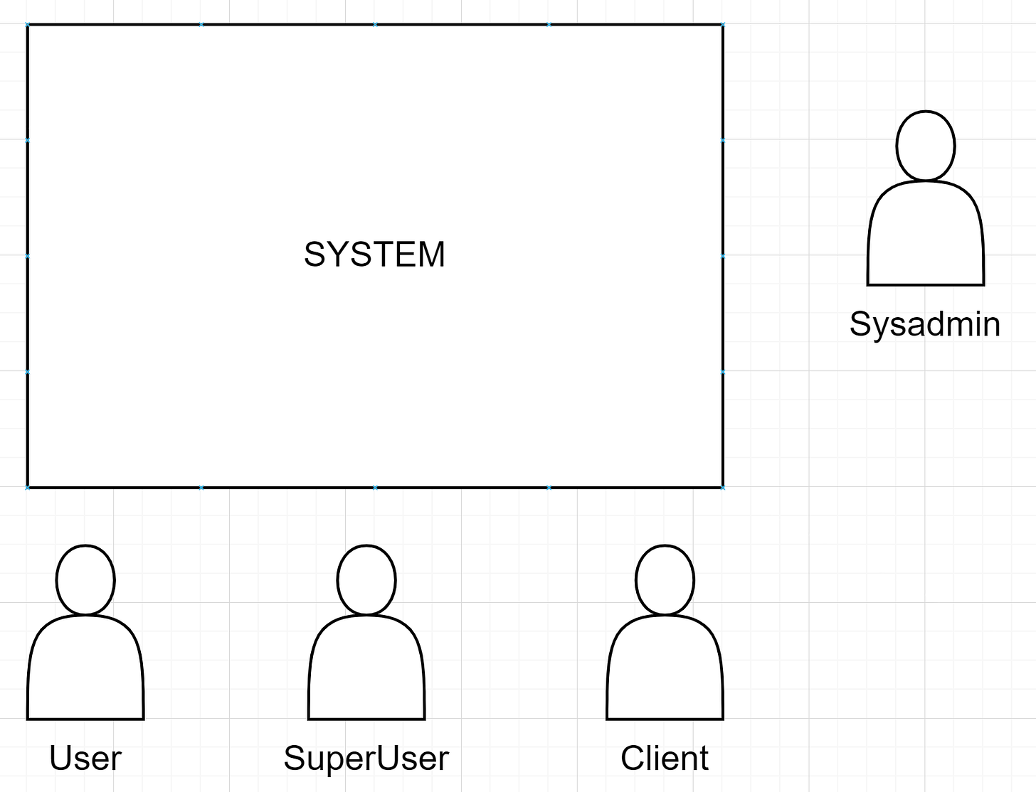 Ce que nous faisons désormais c’est de mettre en bas du schéma les utilisateurs. Nous listons les différents types d’utilisateurs du système d’information et des “super” utilisateurs. Il peut s’agir de collaborateur, de comptables, de clients, d’inspecteurs, d’ouvrier, de chirurgiens, etc … Et nous faisons ensuite des flèches vers les personnes concernées.