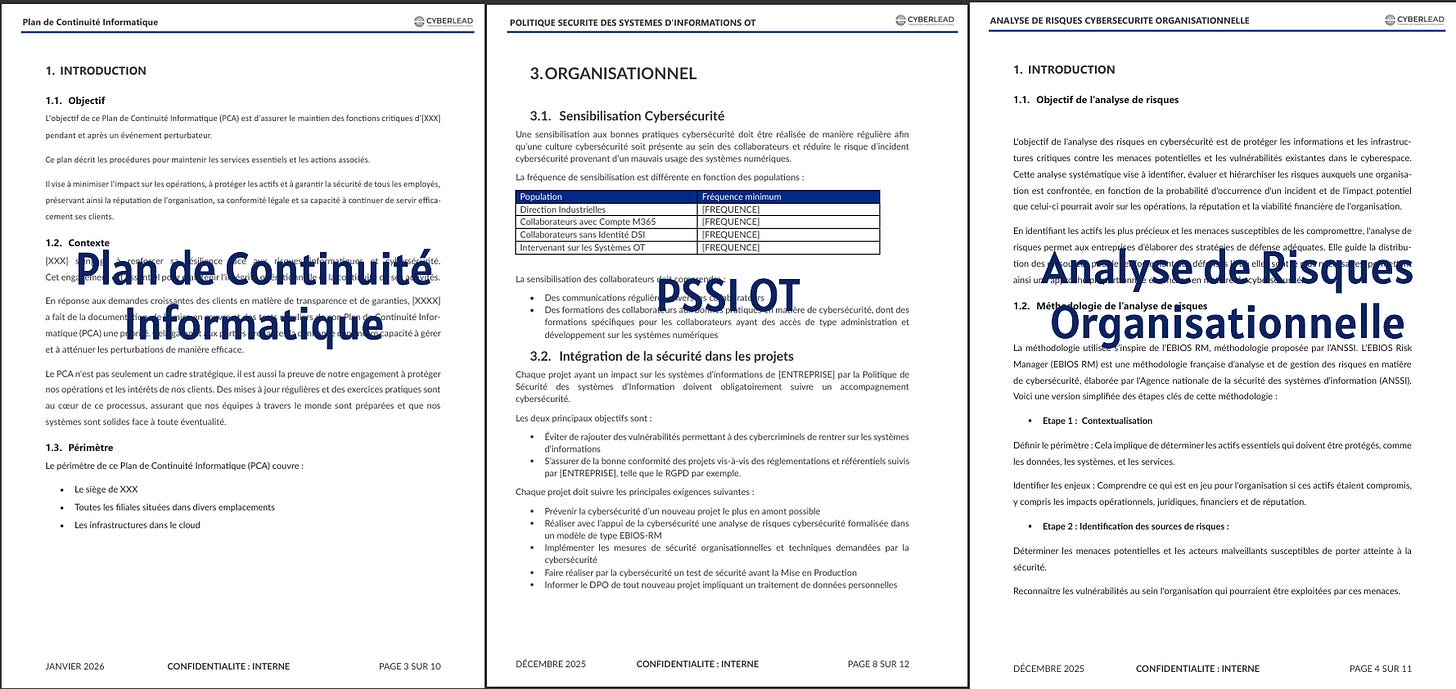 Afin de faire connaitre CyberLead, dont je suis le CEO , j’ai conçu le Kit RSSI avec un ensemble de templates et documents issus de mon expérience de RSSI dans des structures de différentes tailles et différentes maturités. Chaque livrable est pensé pour être utilisé en situation réelle : gouvernance, conformité, projets et opérations.